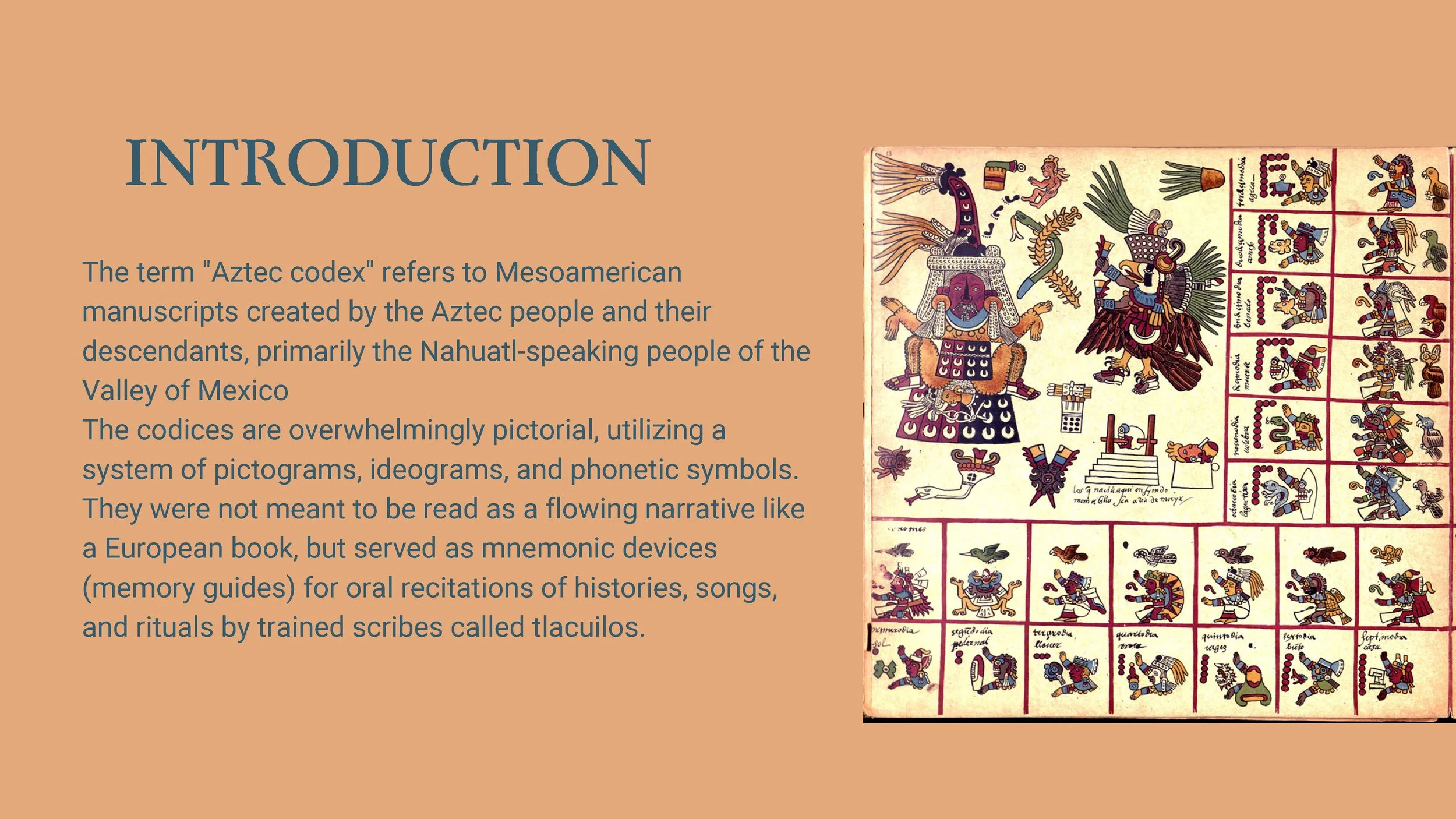 The plot of this presentation explains the history of the Aztec codex and its importance. It also shows the different types of codex through history.