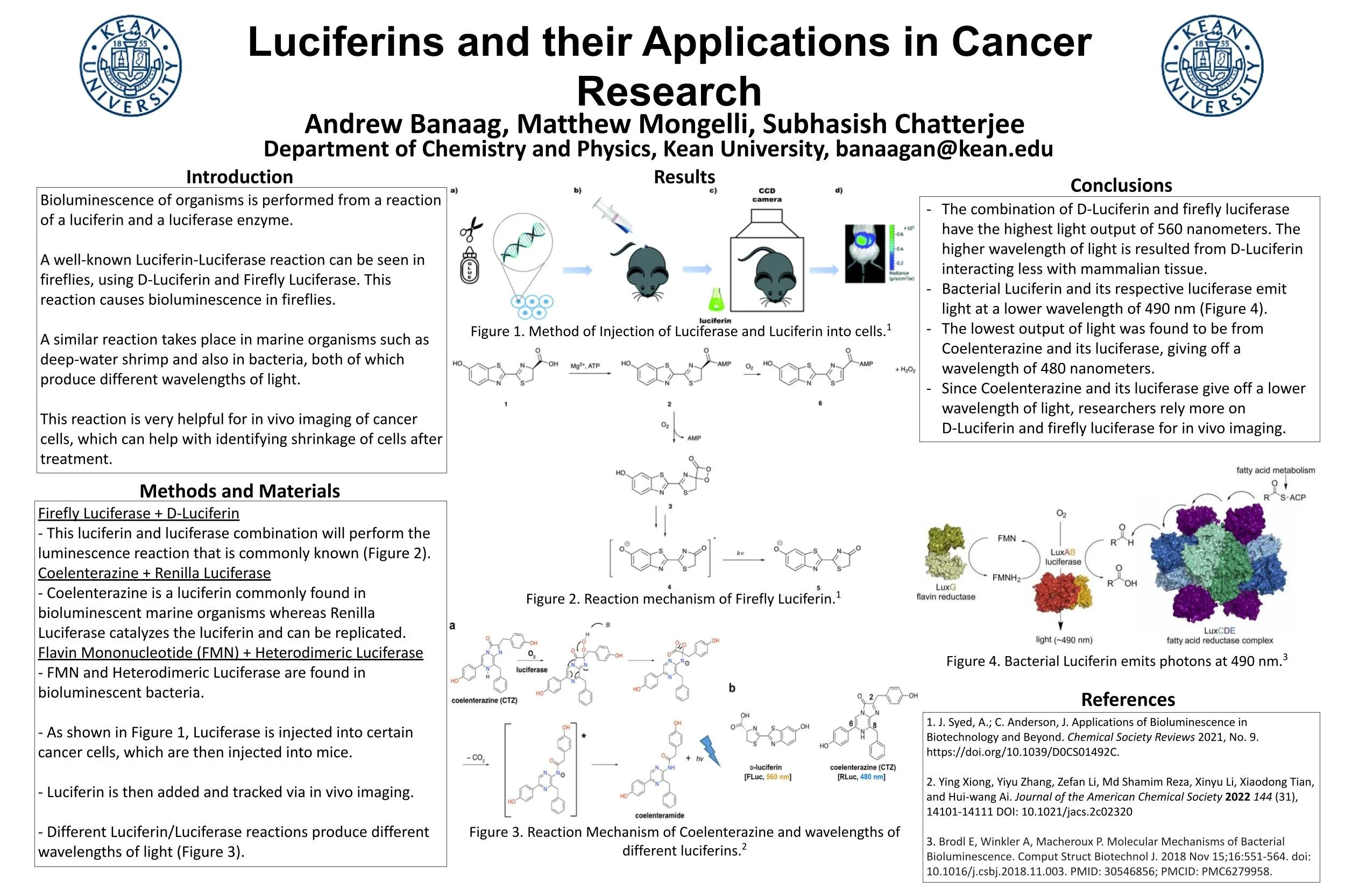 A very common form of luminescence that is seen by many people is from fireflies. Firefly luminescence is the resulting oxidation reaction of a luciferin substrate (D-Luciferin) and a luciferase enzyme. Although a lot less commonly known, many marine organisms such as copepods and deep water shrimp are also bioluminescent like fireflies, but use a different luciferin called Coelenterazine, which has a different structure than firefly luciferin and also goes through a similar oxidation process as D-Luciferin. Another form of luminescence can be found from bacterial organisms as well. Although each of the three previously mentioned luciferins all go through similar oxidation processes, their mechanisms all differ in their own ways, but researchers have been able to use the luciferin-luciferase reactions of each to all perform the same task: identifying cancer cells, which can allow researchers to figure out if cancer cells have shrunken from treatment. Researchers are able to inject the luciferase enzyme into cancer cells which are then injected into mice. Luciferin is also then injected into the mice, and with full body imaging, researchers are able to see the photon emission in the cancer cells.