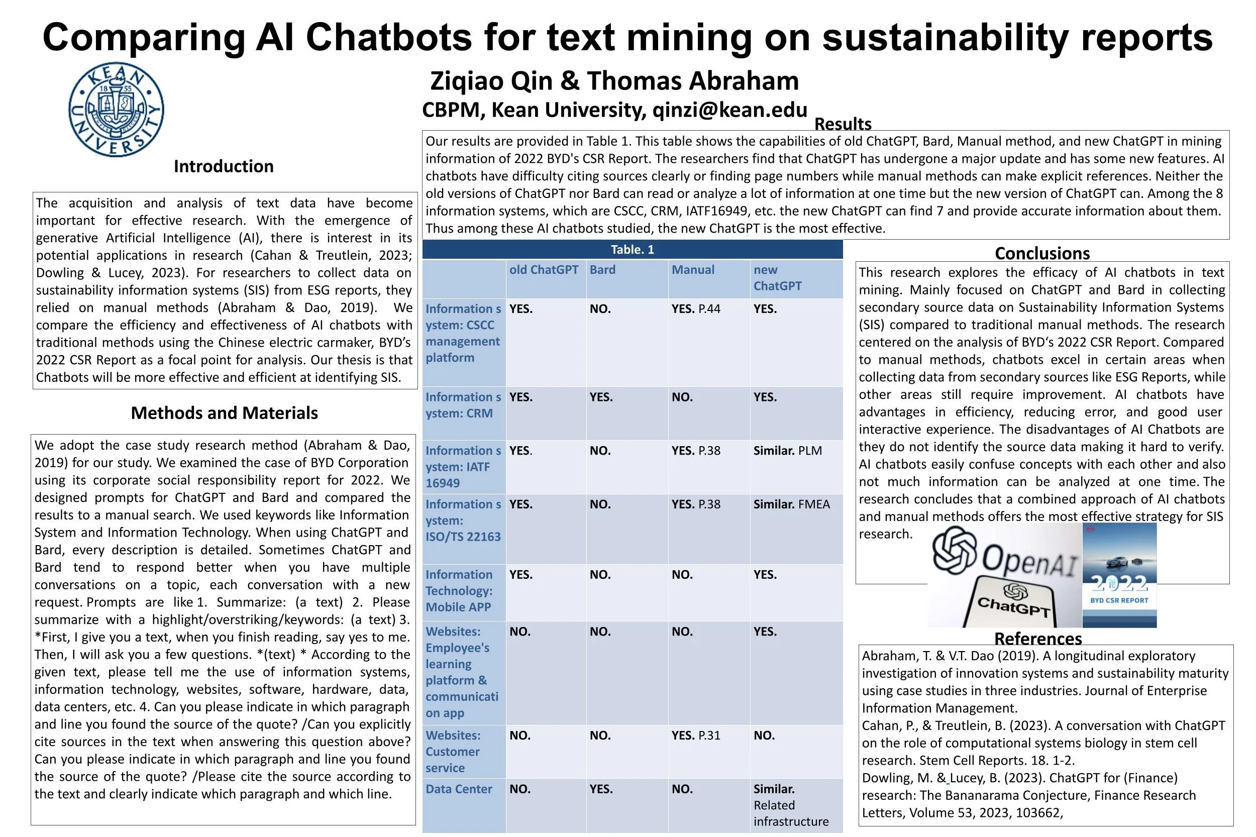 In the rapidly evolving digital era, there is an increasing need to explore efficient methods to collect and analyze data. This paper investigates the utility of AI chatbots, ChatGPT and Bard, as tools to collect secondary source data on Sustainability Information Systems (SIS) in comparison to traditional manual methods. Through systematic data collection and analysis of 2022 BYD’s CSR Report, we discovered that AI chatbots have the potential to streamline the data- gathering process, reduce human-induced errors, and provide a more interactive and dynamic experience for researchers. However, manual methods are still essential in situations where human judgment is required on nuances and where text needs to be clearly cited. In general, at the current stage, manual methods are still indispensable. The Manual method combined with an AI Chatbot is the best method. There is still much room for improvement in artificial intelligence chatbots to enrich the depth and breadth of SIS research.