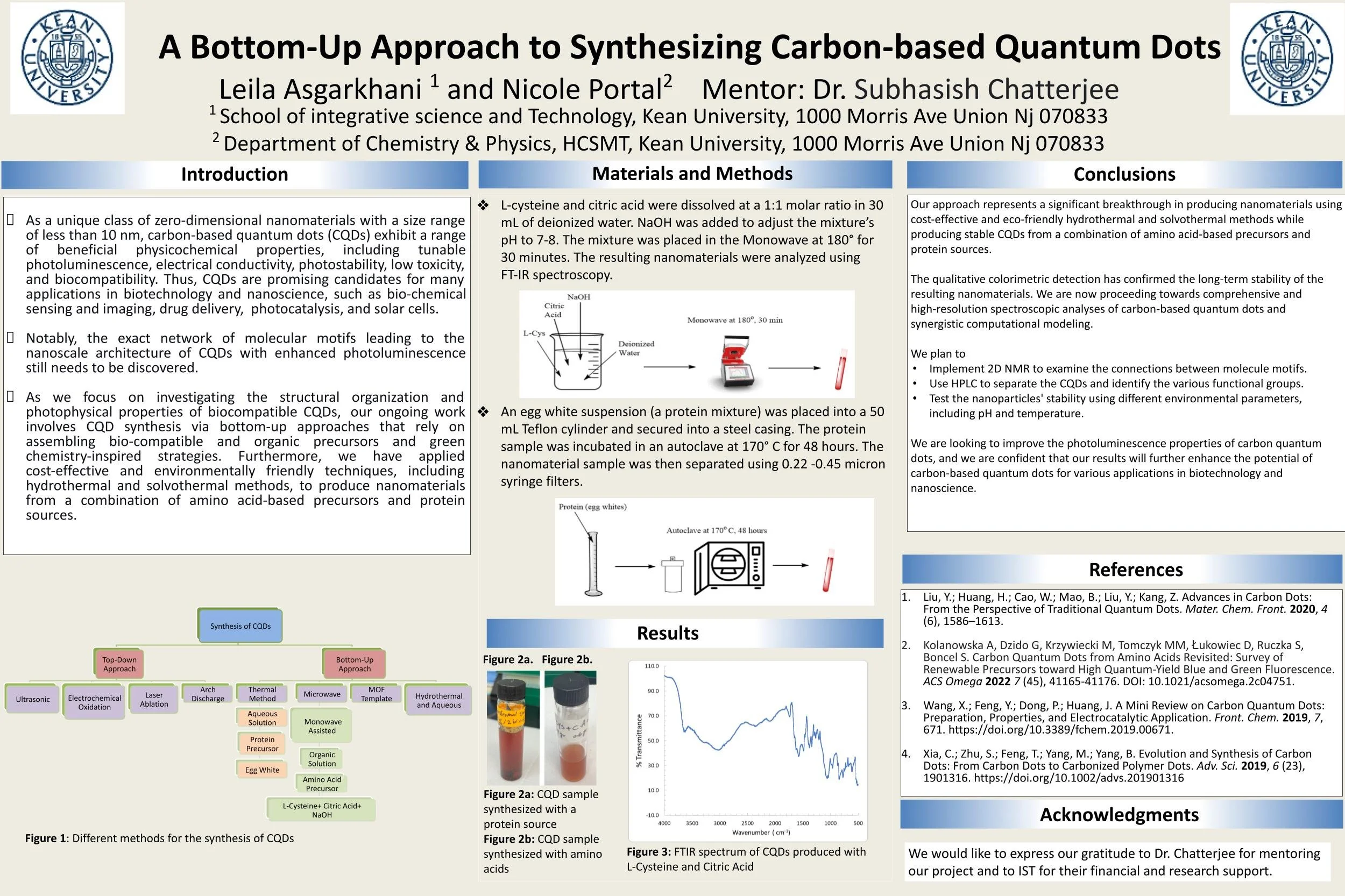 As a unique class of zero-dimensional nanomaterials with a size range of less than 10 nm, carbon-based quantum dots (CQDs) exhibit a plethora of beneficial physicochemical properties, including tunable photoluminescence, electrical conductivity, photostability, low toxicity, and biocompatibility. Thus, CQDs are promising candidates for many applications in biotechnology and nanoscience, such as bio-chemical sensing and imaging, drug delivery, photocatalysis, and solar cells. Notably, the exact network of molecular motifs leading to the nanoscale architecture of CQDs with enhanced photoluminescence still needs to be discovered. As we focus on investigating the structural organization and photophysical properties of biocompatible CQDs, our ongoing work involves CQD synthesis via bottom-up approaches that rely on assembling bio-compatible and organic precursors and green chemistry-inspired strategies. Furthermore, we have applied cost-effective and environmentally friendly techniques, including hydrothermal and solvothermal methods, to produce nanomaterials from a combination of amino acid-based precursors and protein sources. Qualitative colorimetric detection confirms the long-term stability of the resulting nanomaterials as we proceed toward comprehensive and high-resolution spectroscopic analyses of the carbon-based quantum dots, along with synergistic computational modeling.