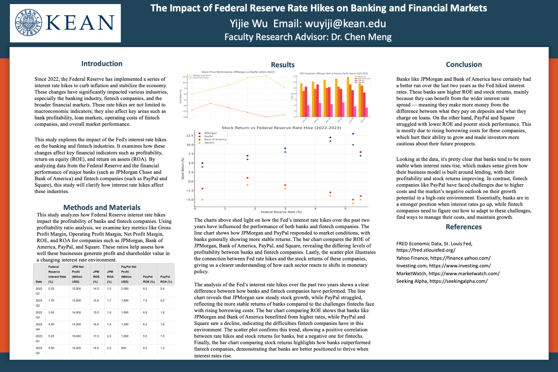 Since 2022, the Federal Reserve has raised interest rates multiple times to control inflation and stabilize the economy. These changes have had a significant impact on various industries, particularly banks and fintech companies. This study examines how these interest rate hikes have affected the performance of major banks like JPMorgan Chase and Bank of America, compared to fintech companies such as PayPal and Square. By analyzing key financial indicators, including profitability (ROE and ROA) and stock returns, this research explores the differences in how these sectors have responded to the changing market environment. The results show that banks have generally benefitted from higher rates due to increased profit margins from loan interest, while fintech companies have struggled with higher borrowing costs and investor caution. This research provides valuable insights into the differing impacts of interest rate hikes on traditional banking versus fintech, helping investors understand the risks and opportunities in each sector. Ultimately, the findings suggest that banks are in a stronger position during periods of rising rates, while fintech companies need to adjust their strategies to manage costs and maintain growth.